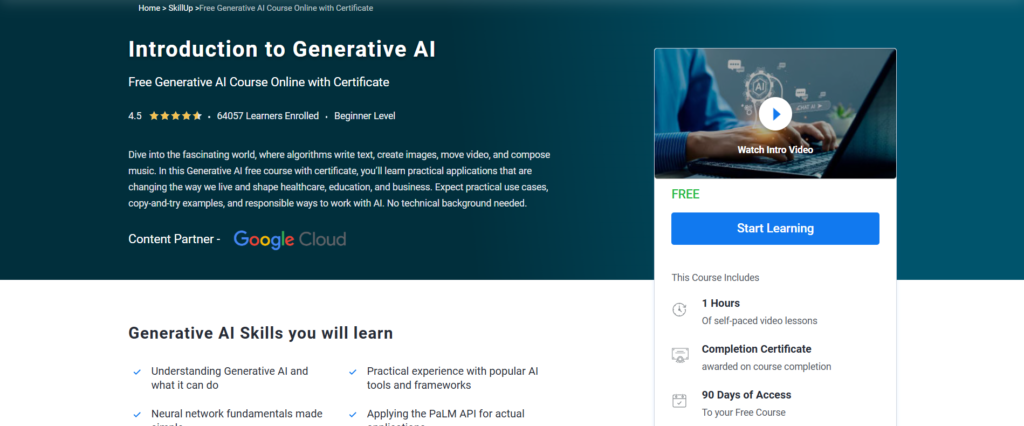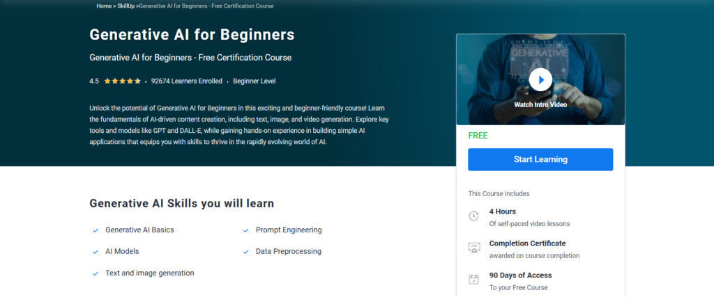 Link : https://www.simplilearn.com/generative-ai-for-beginners-free-course-skillup